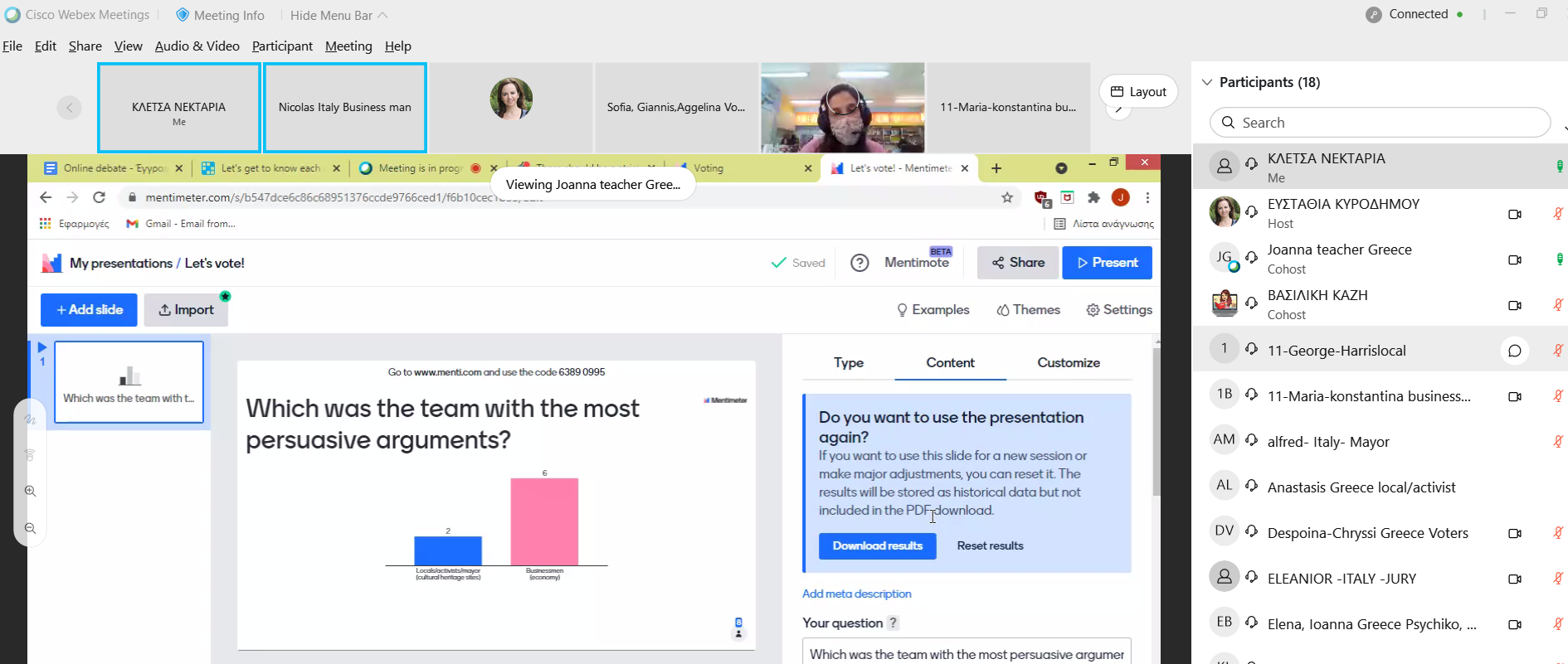 They really enjoyed it talking with students of Italy and Romania and they were happy twice, because the final decission was against Mayor's proposal. They believe that economy needs to be supported.